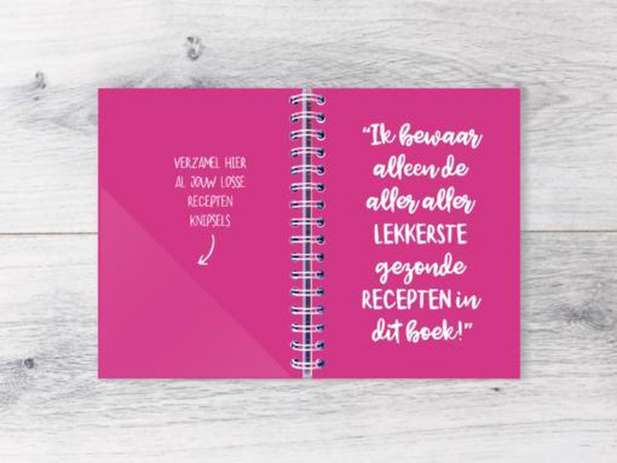 Er zit een handig elastiek omheen om het geheel bij elkaar te houden. Een super handig invulboek voor al jouw favoriete recepten. Ten slotte vind je in het receptenboek nog toepasselijke quotes.